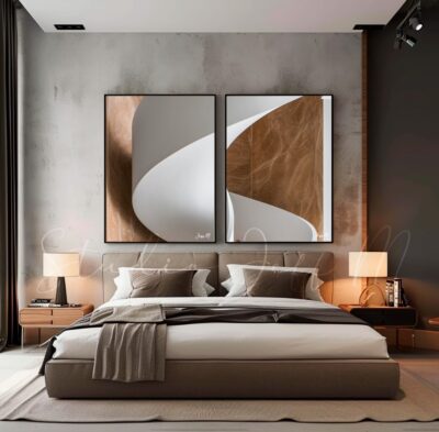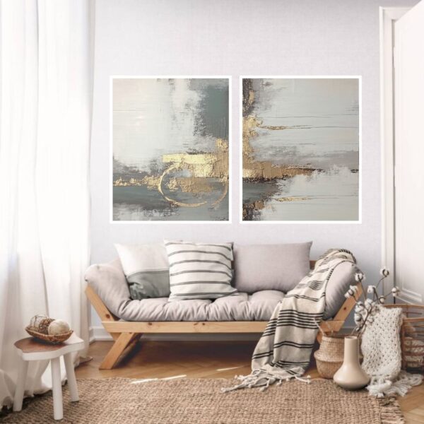 Jogo com 2 Quadros De Luxo Abstrato Efeito Pintura em Relevo em Tons de Rosa, Dourado, Nude e BrancoA partir de: