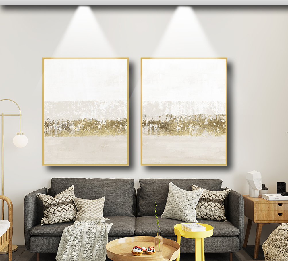 Este quadro abstrato é uma obra de arte minimalista única e impressionante. Ele é feito de cores offwhite, nude e amarelo, e foi criado com uma técnica de primeira linha. O quadro é perfeito para qualquer cômodo da casa e certamente adicionará um toque de elegância à sua decoração