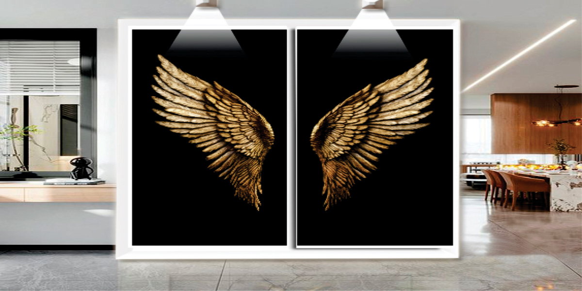 Nosso quadro de parede excepcional, destacando uma imagem principal com asas em primeiro plano e fundo preto. Com qualidade de primeira linha, cada detalhe é meticulosamente capturado para transmitir a textura e a imponência das asas, contrastando com o fundo escuro.