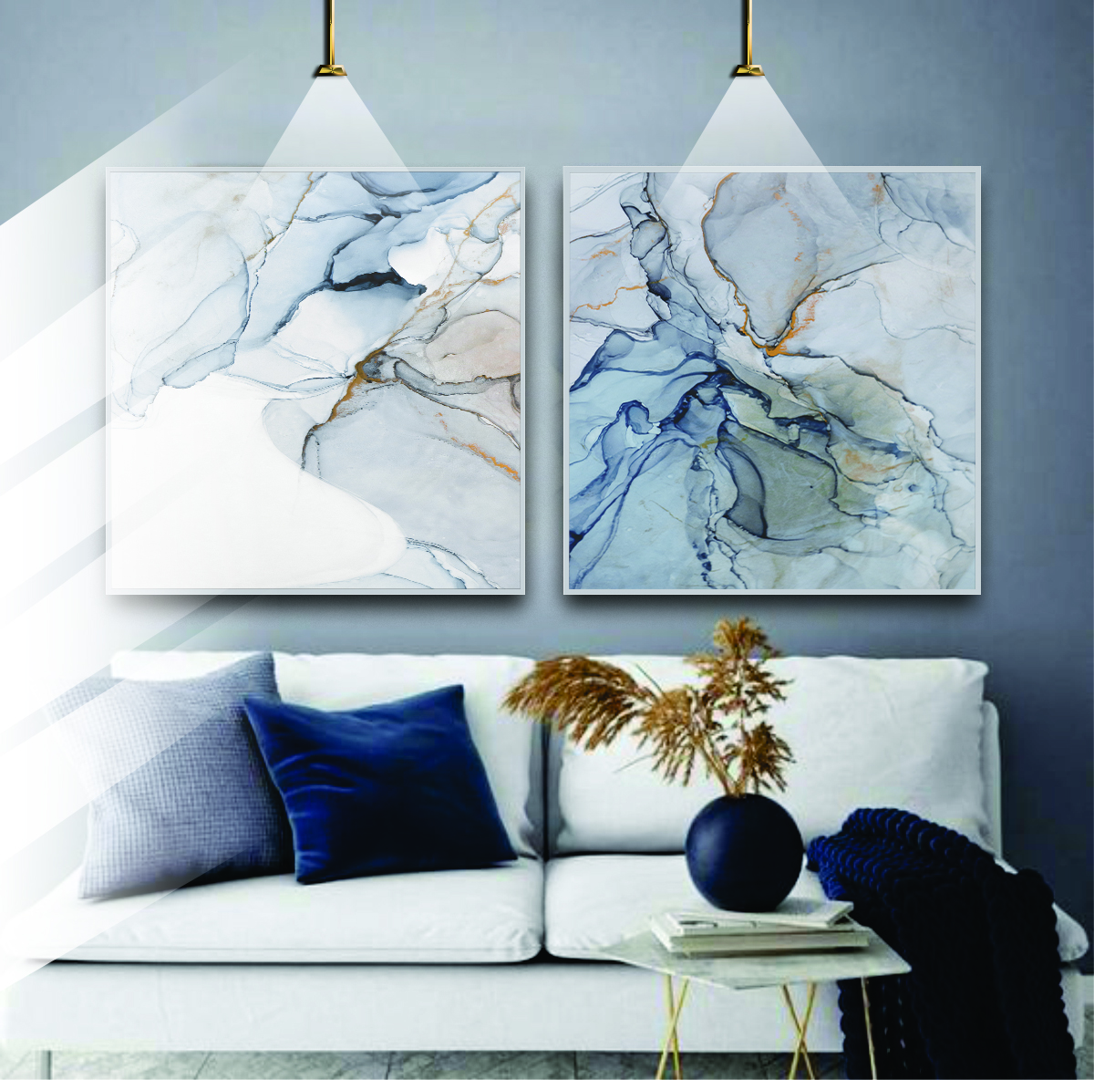 Material leve, resistente e de superfície lisa. A impressão é feita diretamente na placa, garantindo alta definição e fidelidade das cores com a adição de uma folha de vidro na frente. O resultado é um visual mais moderno e clean, com acabamento uniforme e sem relevo. Perfeito para ambientes com decoração contemporânea e minimalista.