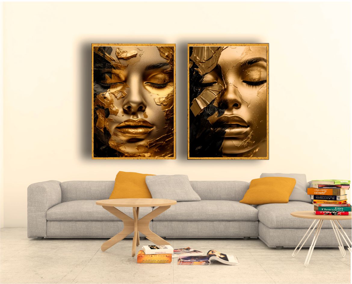 Seja o primeiro a avaliar “Jogo com 2 Quadros Composição Mulher Figurativa Dourada”