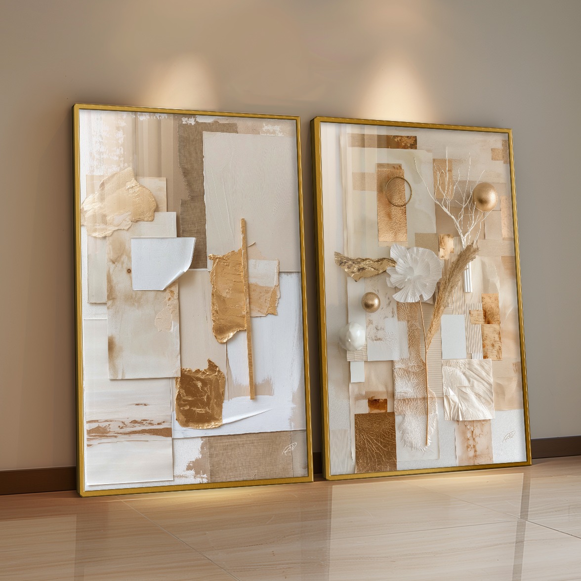 Esta bela arte Abstrato em Tons de Branco, Cinza, Nude e Dourado é uma obra de arte de primeira linha. Impresso com detalhes realistas e cores vibrantes, esta pintura é perfeita para qualquer fã de arte natural ou de decoração de interiores elegante. Compre hoje e adicione um toque de beleza e mistério à sua casa.