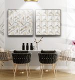 Seja o primeiro a avaliar “Jogo com 2 Quadros Decorativos Abstrato Minimalistas em Tons de Branco e Dourado”