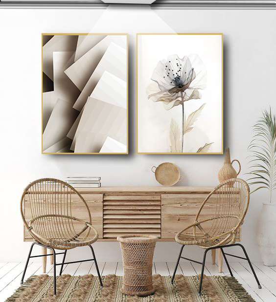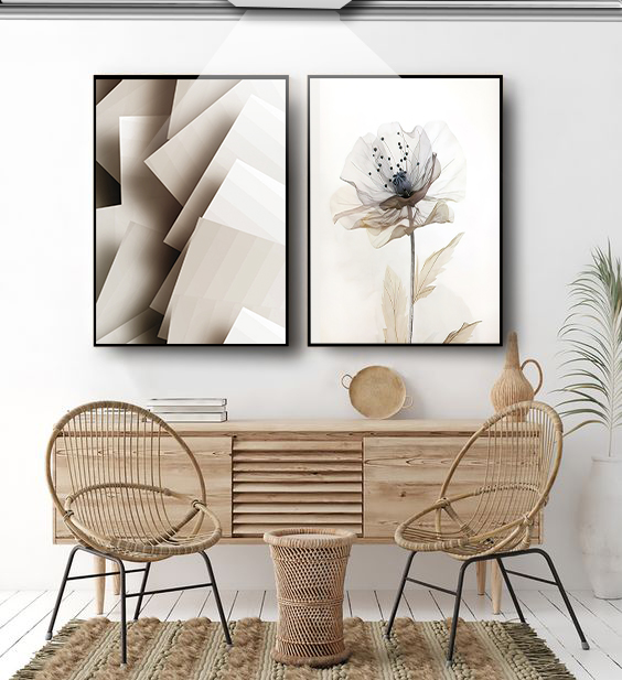 Esta bela arte Composição Abstrato e Floral em Tons neutros é uma obra de arte de primeira linha. Impresso com detalhes realistas e cores vibrantes, esta pintura é perfeita para qualquer fã de arte natural ou de decoração de interiores elegante. Compre hoje e adicione um toque de beleza e mistério à sua casa.