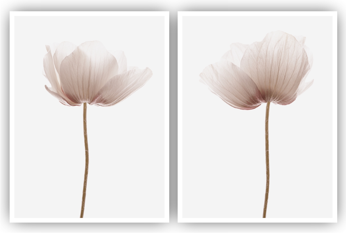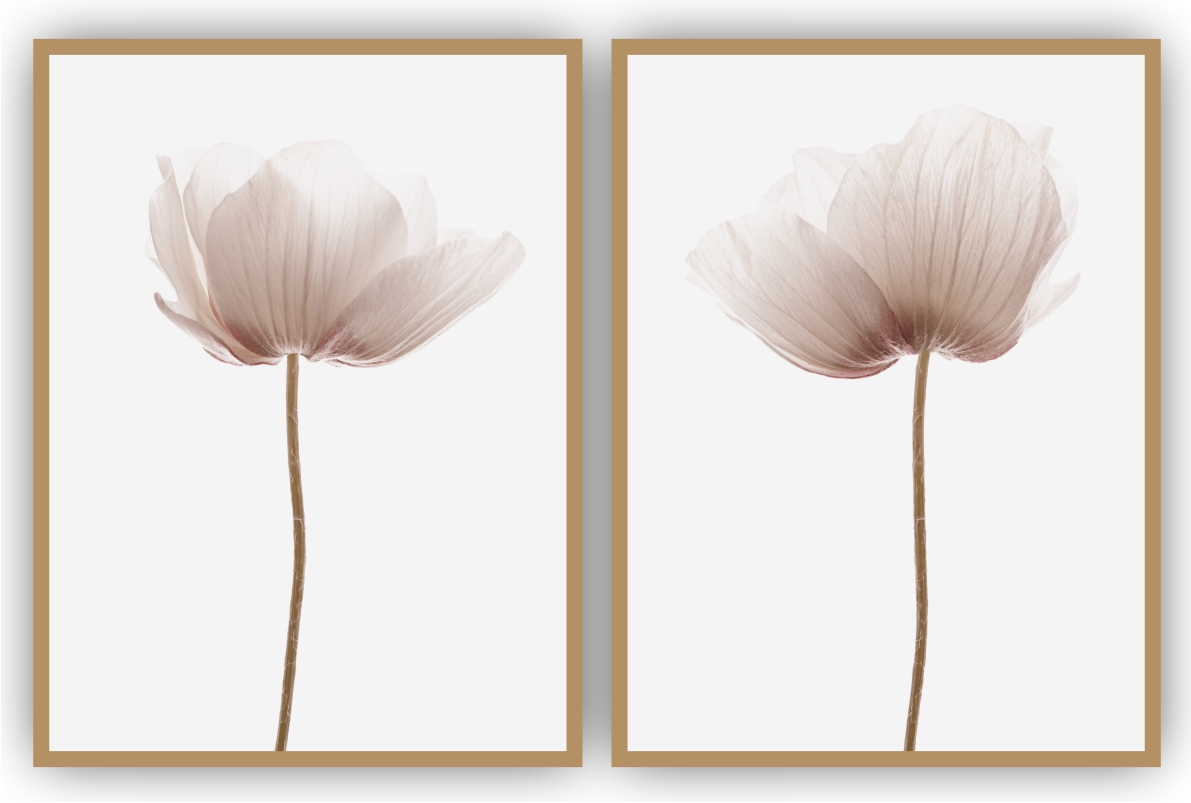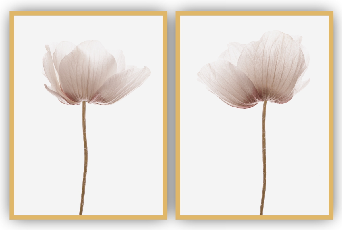 Jogo com 2 Quadros Decorativos Floral Rosa