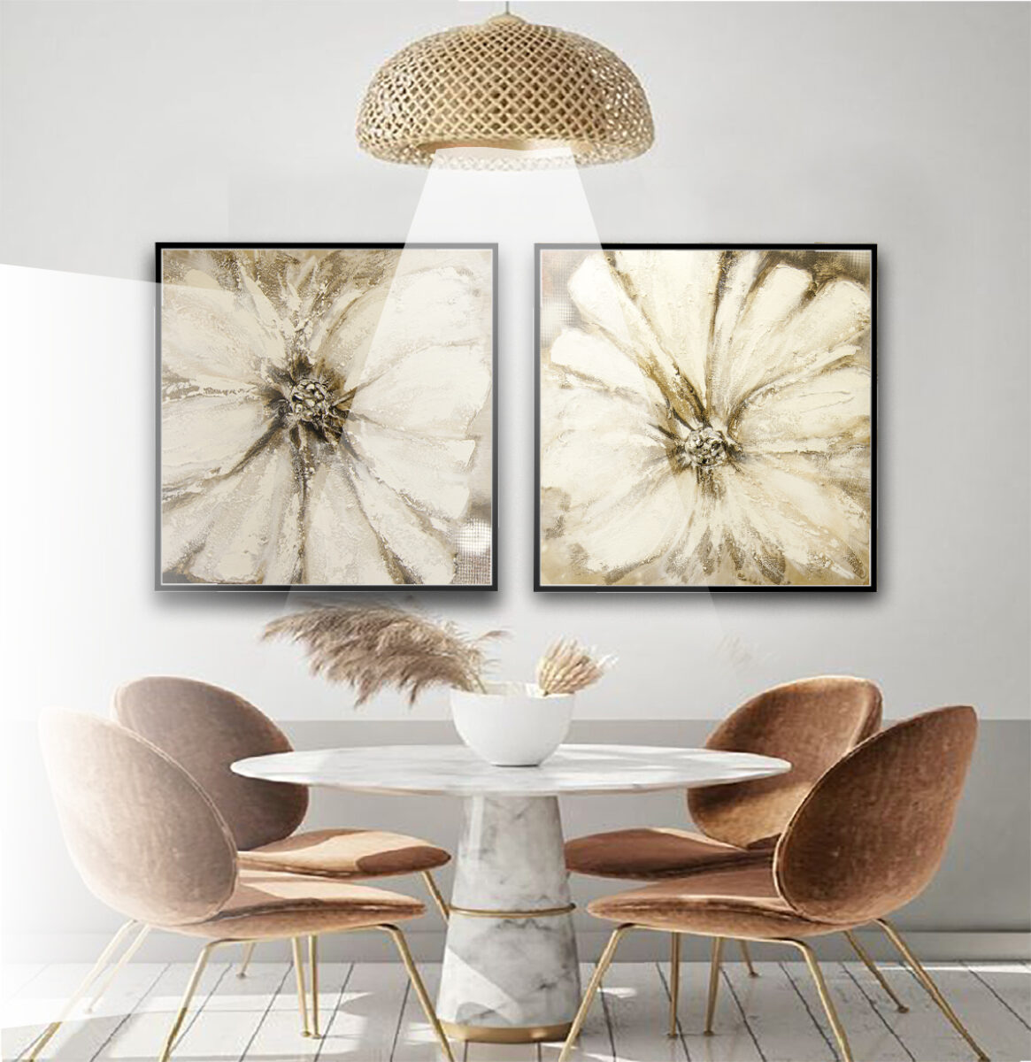 Feito com tecido 100% poliéster com textura semelhante à de uma tela de pintura. A impressão é feita em alta resolução, proporcionando cores vivas e toque artístico ao quadro. O material é esticado em uma base de madeira (chassi), conferindo profundidade e sofisticação — ideal para quem busca uma estética mais clássica e elegante. Com esse acabamento você tem uma real obra de arte em sua decoração.