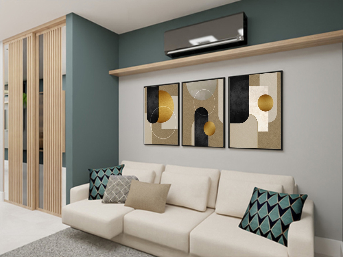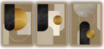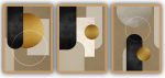 Jogo com 3 Quadros Decorativos Abstrato com Formas Geométricas
