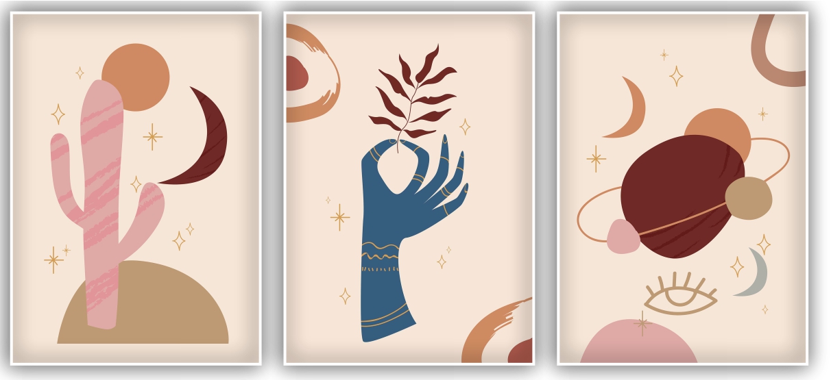Ainda sugerimos um modelo de instalação no momento de pendurar os quadros. Veja a seguir: