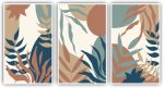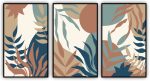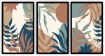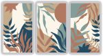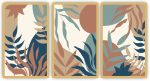 Jogo com 3 Quadros Decorativos Folhas e Formas Abstratas
