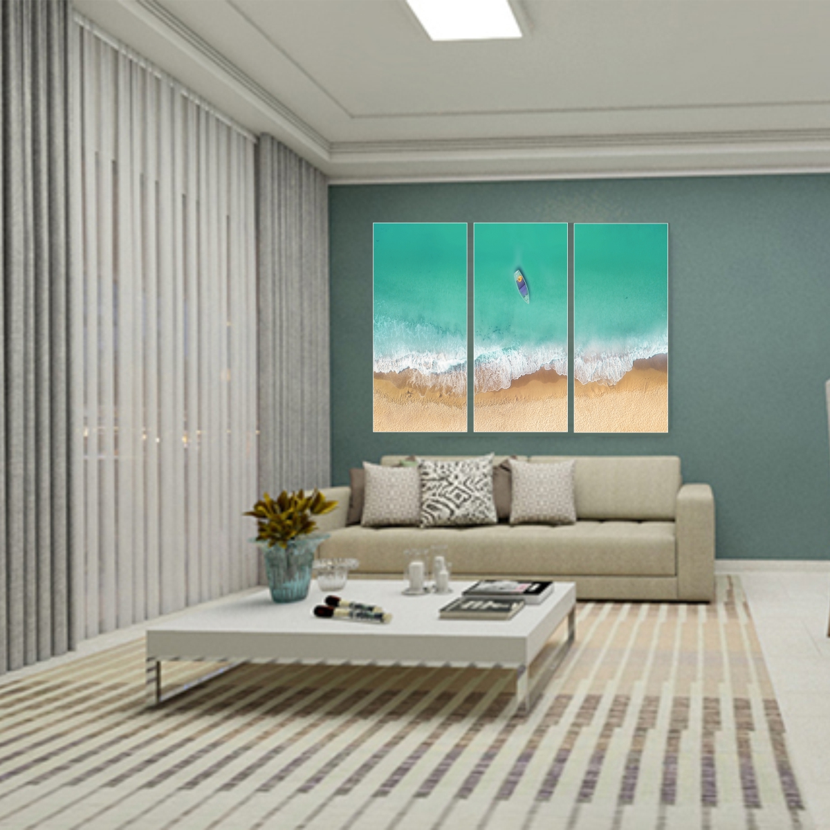 Jogo com 3 Quadros Decorativos Praia