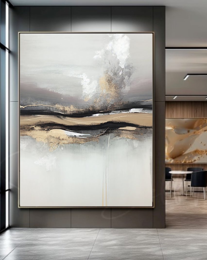 Esta bela arte Abstrato em Tons de Cinza, Branco, Preto e Cobre é uma obra de arte de primeira linha. Impresso com detalhes realistas e cores vibrantes, esta pintura é perfeita para qualquer fã de arte natural ou de decoração de interiores elegante. Compre hoje e adicione um toque de beleza e mistério à sua casa.