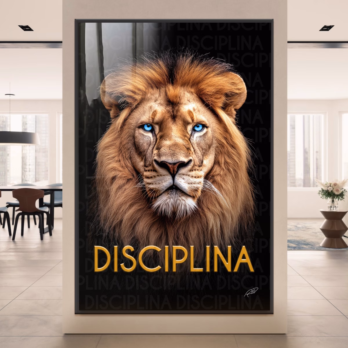 Encante-se com a beleza deste quadro Leão com Olhos Azuis, que combina cores fortes e traços delicados para criar um toque de elegância na sua decoração.