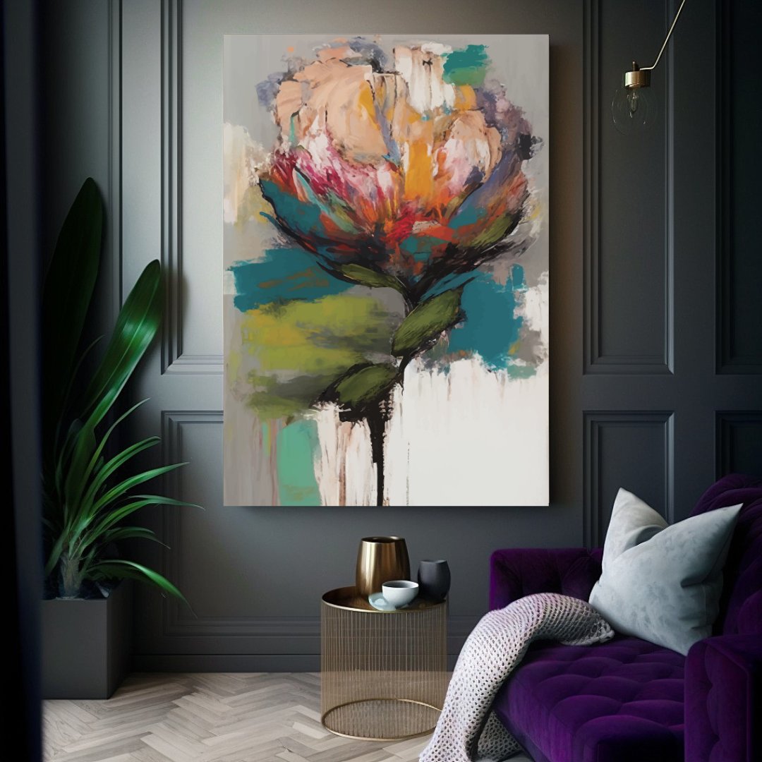 Esta bela arte Floral Colorido Elegante é uma obra de arte de primeira linha. Impresso com detalhes realistas e cores vibrantes, esta pintura é perfeita para qualquer fã de arte natural ou de decoração de interiores elegante. Compre hoje e adicione um toque de beleza e mistério à sua casa.