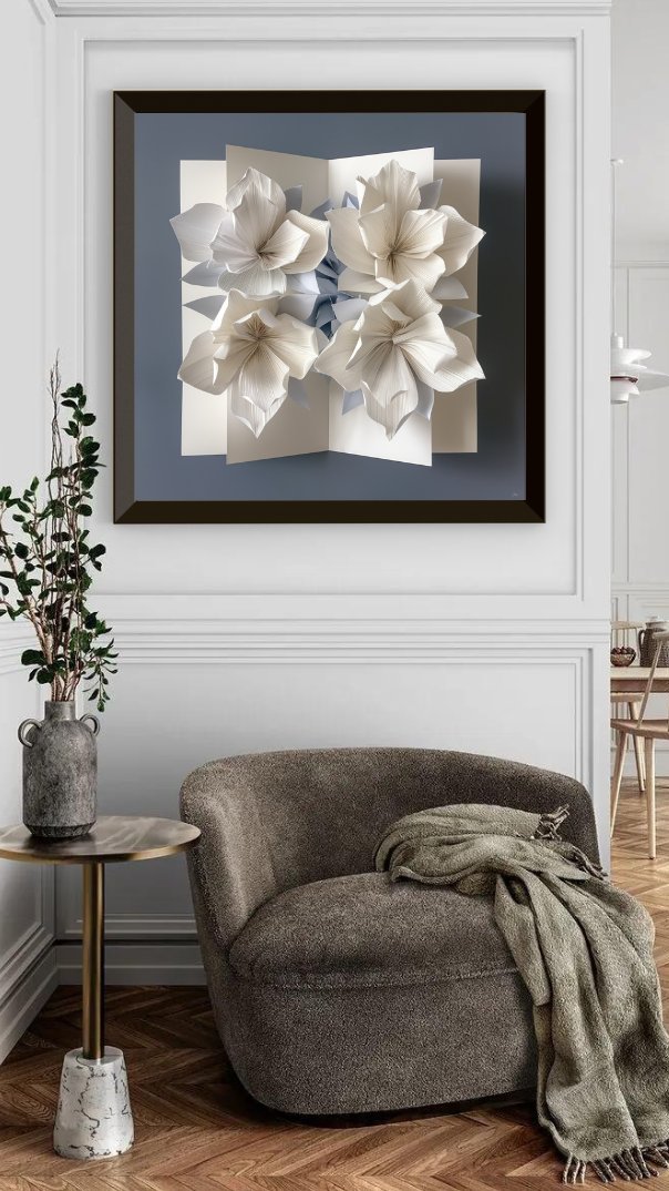 Esta bela arte Floral Off White com Efeito 3D é uma obra de arte de primeira linha. Impresso com detalhes realistas e cores vibrantes, esta pintura é perfeita para qualquer fã de arte natural ou de decoração de interiores elegante. Compre hoje e adicione um toque de beleza e mistério à sua casa.