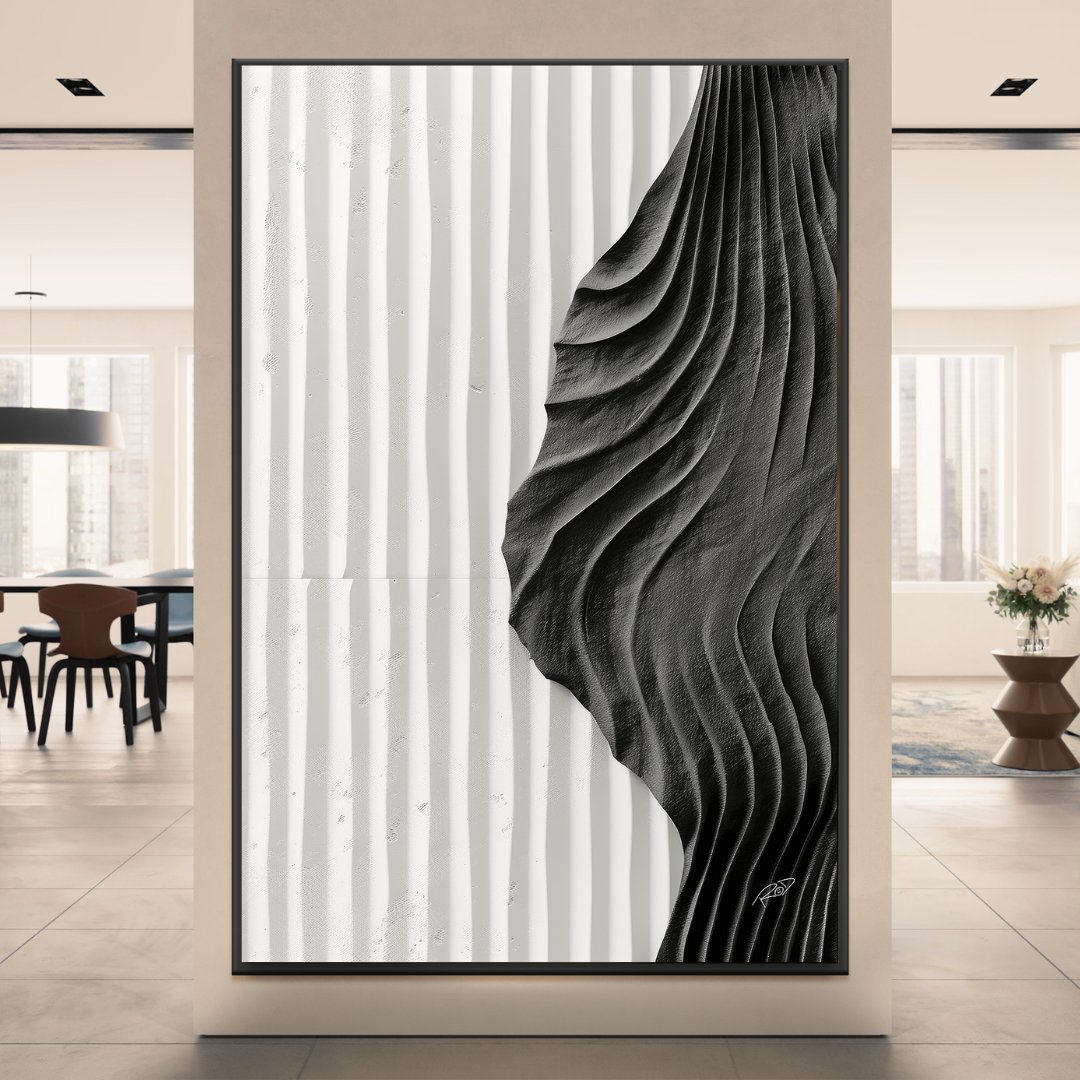 Esta bela arte Abstract Black and White é uma obra de arte de primeira linha. Impresso com detalhes realistas e cores vibrantes, esta pintura é perfeita para qualquer fã de arte natural ou de decoração de interiores elegante. Compre hoje e adicione um toque de beleza e mistério à sua casa.