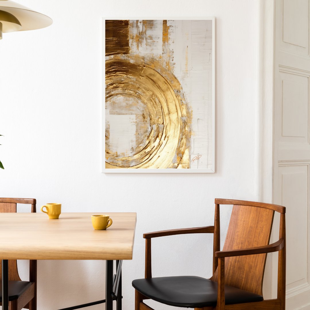 Esta bela arte Abstrato Efeito Metalizado Dourado é uma obra de arte de primeira linha. Impresso com detalhes realistas e cores vibrantes, esta pintura é perfeita para qualquer fã de arte natural ou de decoração de interiores elegante. Compre hoje e adicione um toque de beleza e mistério à sua casa.