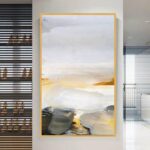Esta bela arte Abstrato em tons de branco, dourado e cinza com efeito pintura é uma obra de arte de primeira linha. Impresso com detalhes realistas e cores vibrantes, esta pintura é perfeita para qualquer fã de arte natural ou de decoração de interiores elegante. Compre hoje e adicione um toque de beleza e mistério à sua casa.