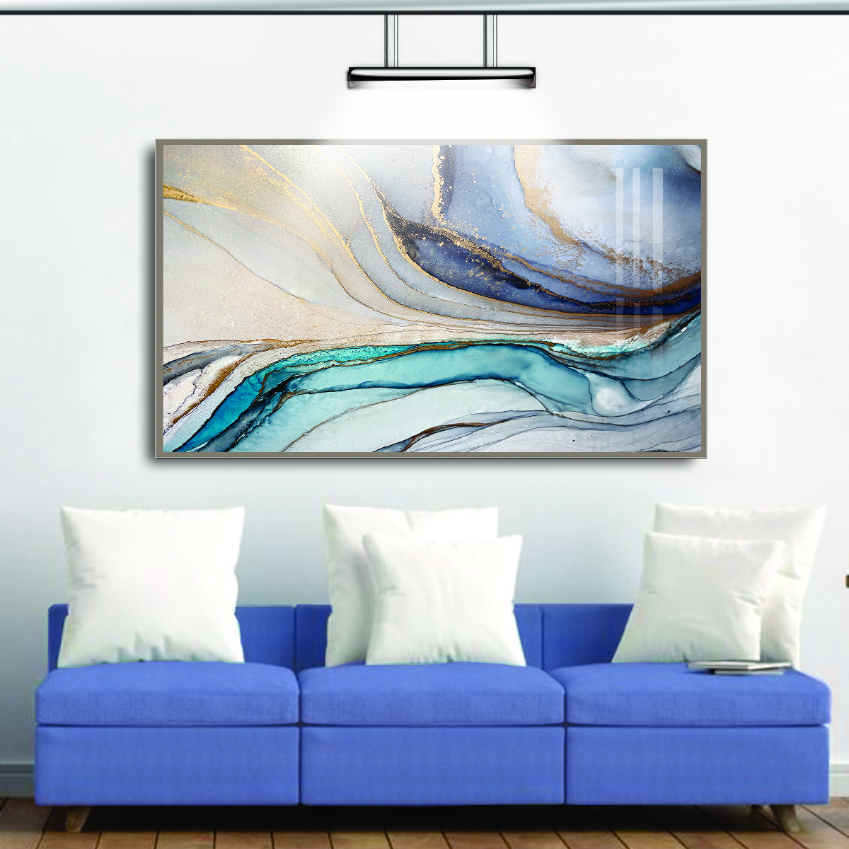 Este belo Quadro Decorativo Abstrato Marmorizado Azul com Brilho Dourado é uma obra de arte de primeira linha. Impresso com detalhes realistas e cores vibrantes, esta pintura é perfeita para qualquer fã de arte ou de decoração de interiores elegante. Compre hoje e adicione um toque de beleza à sua casa.