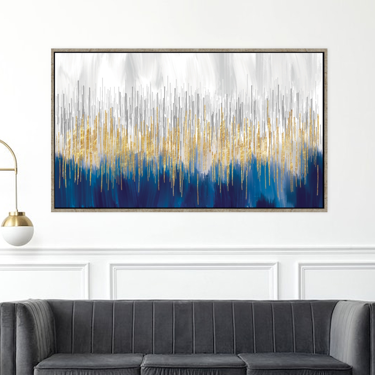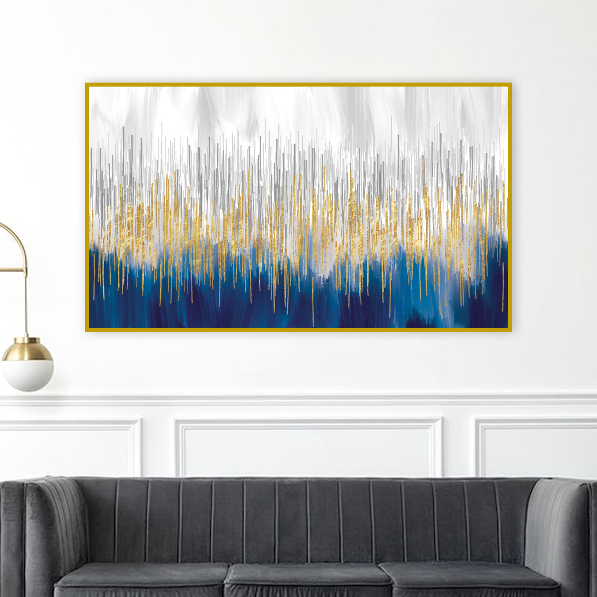 Descubra a beleza cativante deste quadro decorativo abstrato de primeira linha, perfeito para transformar qualquer ambiente com seu estilo único. As cores em azul, dourado e branco adicionam um toque de elegância e sofisticação à peça, tornando-a uma escolha envolvente para realçar a decoração do seu espaço.