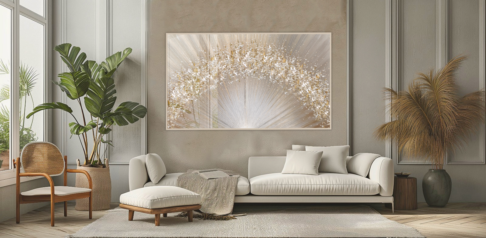 Feito com tecido 100% poliéster com textura semelhante à de uma tela de pintura. A impressão é feita em alta resolução, proporcionando cores vivas e toque artístico ao quadro. O material é esticado em uma base de madeira (chassi), conferindo profundidade e sofisticação — ideal para quem busca uma estética mais clássica e elegante. Com esse acabamento você tem uma real obra de arte em sua decoração.
