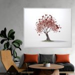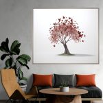 Esta bela pintura de uma árvore com borboletas vermelhas é uma obra de arte de primeira linha. Impresso com detalhes realistas e cores vibrantes, esta pintura é perfeita para qualquer fã de arte natural ou de decoração de interiores elegante. Compre hoje e adicione um toque de beleza e mistério à sua casa.