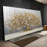 Esta bela arte Árvore Dourada com Efeito Realista é uma obra de arte de primeira linha. Impresso com detalhes realistas e cores vibrantes, esta pintura é perfeita para qualquer fã de arte natural ou de decoração de interiores elegante. Compre hoje e adicione um toque de beleza e mistério à sua casa.