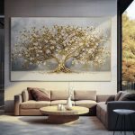 Esta bela arte Árvore Dourada e Off White é uma obra de arte de primeira linha. Impresso com detalhes realistas e cores vibrantes, esta pintura é perfeita para qualquer fã de arte natural ou de decoração de interiores elegante. Compre hoje e adicione um toque de beleza e mistério à sua casa.