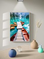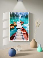 Nossa arte de parede excepcional, apresentando um Barcos no Mar Azul. Trabalhada com qualidade de primeira linha, cada detalhe é meticulosamente capturado, transmitindo as cores de tirar o fôlego e sereno ambiente da cena. Esta obra-prima vai além do convencional, evocando uma sensação de tranquilidade e maravilha inspirada pela majestosa silhueta das montanhas contra os tons do pôr-do-sol.
