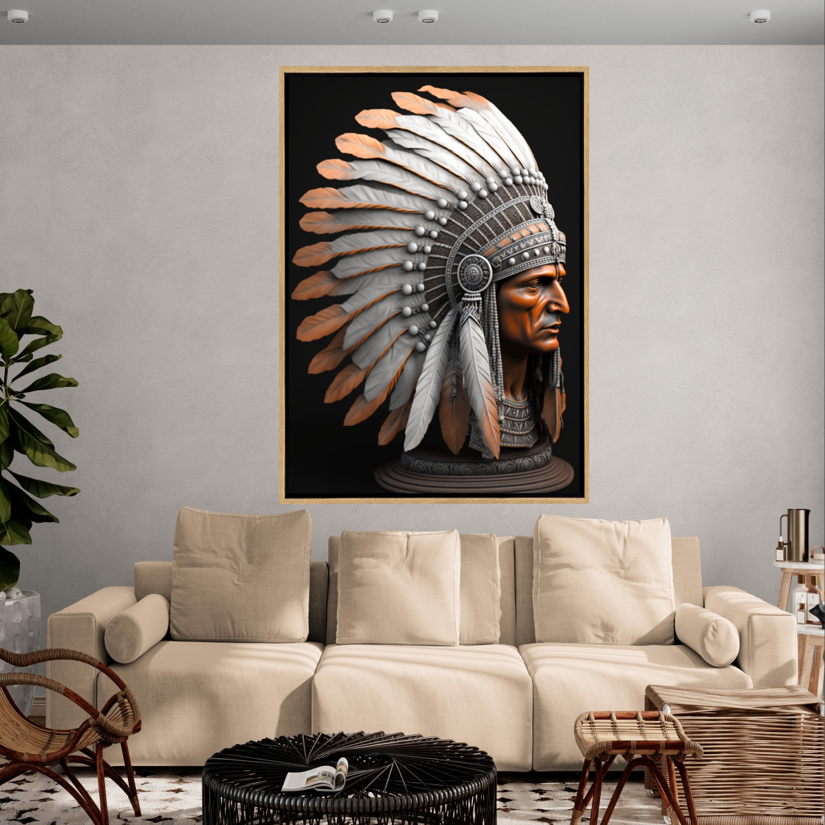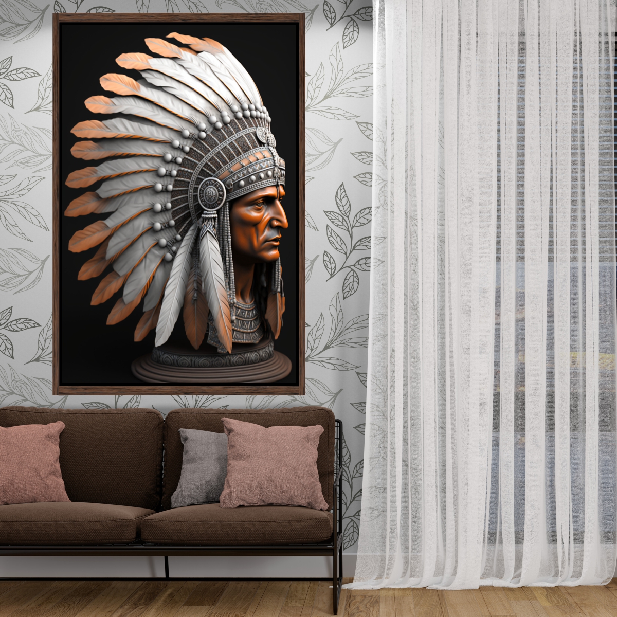 Esta bela pintura de uma estatua figurativa índio é uma obra de arte de primeira linha. Impresso com detalhes realistas e cores vibrantes, esta pintura é perfeita para qualquer fã da cultura indígena ou de decoração de interiores elegante. Compre hoje e adicione um toque de beleza e mistério à sua casa.