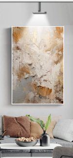 Este belo Quadro Decorativo Exclusivo Abstrato com Tons Neutros e Detalhes em Laranja e Dourado é uma obra de arte de primeira linha. Impresso com detalhes realistas e cores vibrantes, esta pintura é perfeita para qualquer fã de arte ou de decoração de interiores elegante. Compre hoje e adicione um toque de beleza à sua casa.