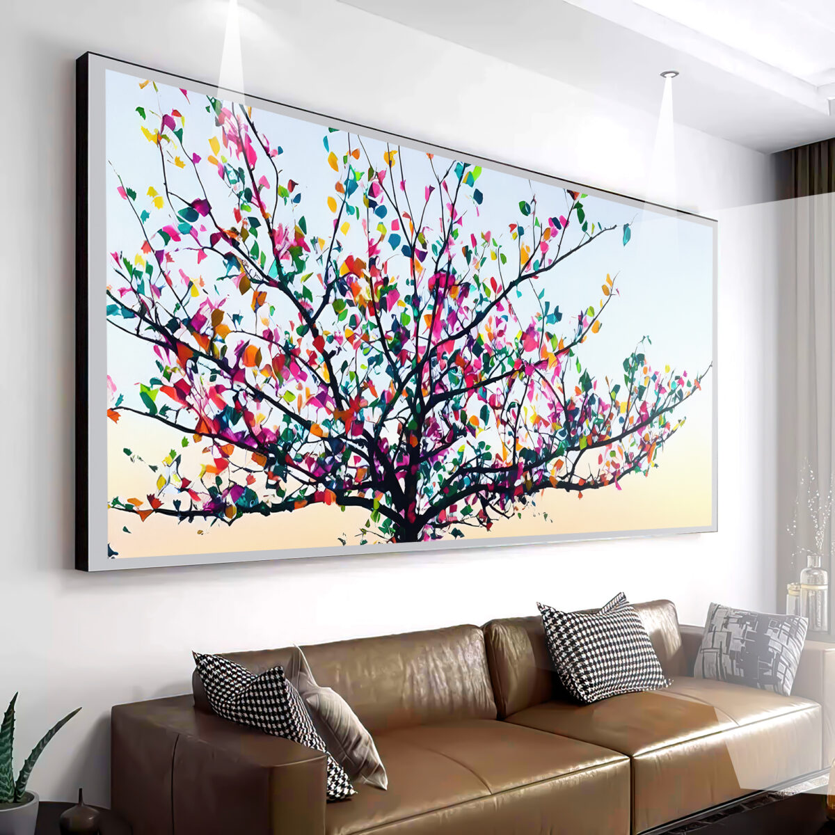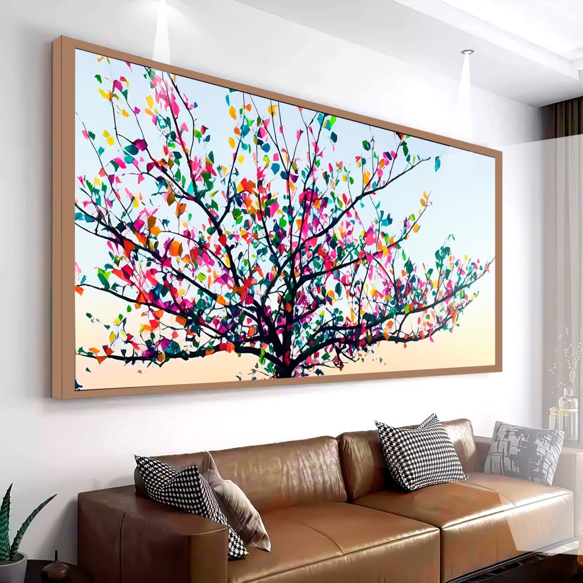 Nosso quadro de parede excepcional, destacando a imagem principal de uma árvore adornada com flores coloridas. Com qualidade de primeira linha, cada detalhe é meticulosamente capturado, ressaltando a beleza efêmera das flores em contraste com a solidez da árvore. Esta obra-prima vai além da mera representação, evocando uma sensação de renovação e alegria que a natureza proporciona.