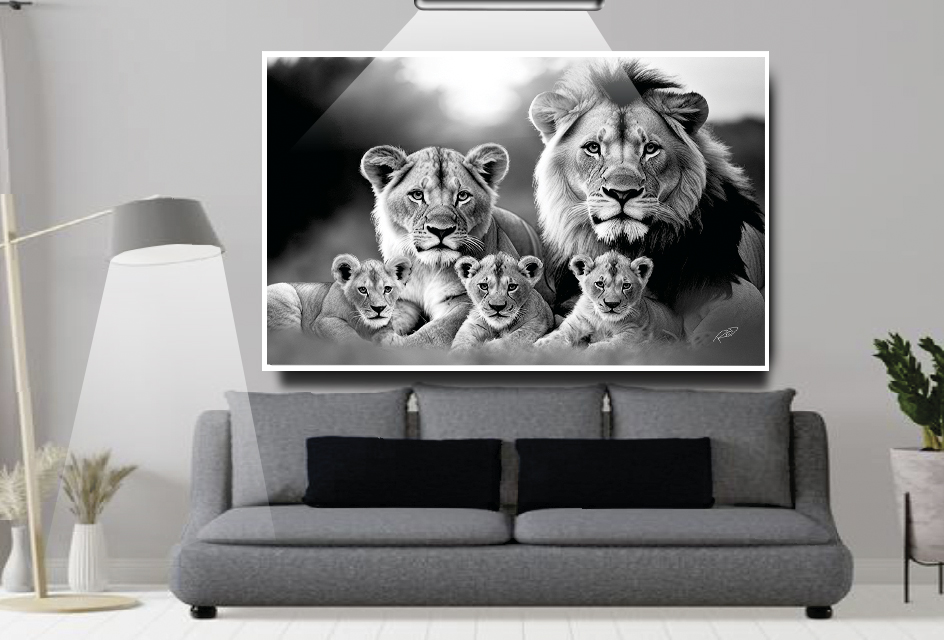 Nosso quadro de parede excepcional, apresentando a imagem principal de uma família de leões em toda a sua majestade. Com qualidade de primeira linha, cada detalhe é meticulosamente capturado, enfatizando a harmonia entre os membros da família leonina. Esta obra-prima vai além da mera representação, transmitindo uma sensação de conexão profunda e proteção mútua que a família representa.