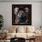 Este quadro figurativo coala é uma obra de arte de primeira linha. Ele é impresso com detalhes realistas e cores vibrantes. O quadro é perfeito para qualquer fã de animais ou de decoração de interiores elegante. Compre hoje e adicione um toque de beleza e mistério à sua casa.