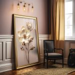 Esta bela arte Floral Branco com Dourado é uma obra de arte de primeira linha. Impresso com detalhes realistas e cores vibrantes, esta pintura é perfeita para qualquer fã de arte natural ou de decoração de interiores elegante. Compre hoje e adicione um toque de beleza e mistério à sua casa.
