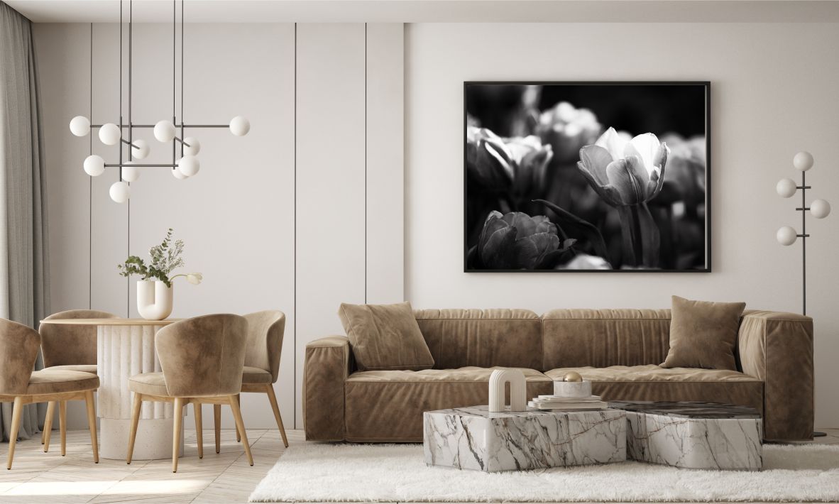 Esta bela arte Floral Preto e Branco é uma obra de arte de primeira linha. Impresso com detalhes realistas e cores vibrantes, esta pintura é perfeita para qualquer fã de arte natural ou de decoração de interiores elegante. Compre hoje e adicione um toque de beleza e mistério à sua casa.