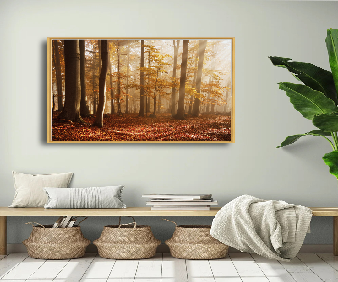 Feito com tecido 100% poliéster com textura semelhante à de uma tela de pintura. A impressão é feita em alta resolução, proporcionando cores vivas e toque artístico ao quadro. O material é esticado em uma base de madeira (chassi), conferindo profundidade e sofisticação — ideal para quem busca uma estética mais clássica e elegante. Com esse acabamento você tem uma real obra de arte em sua decoração.