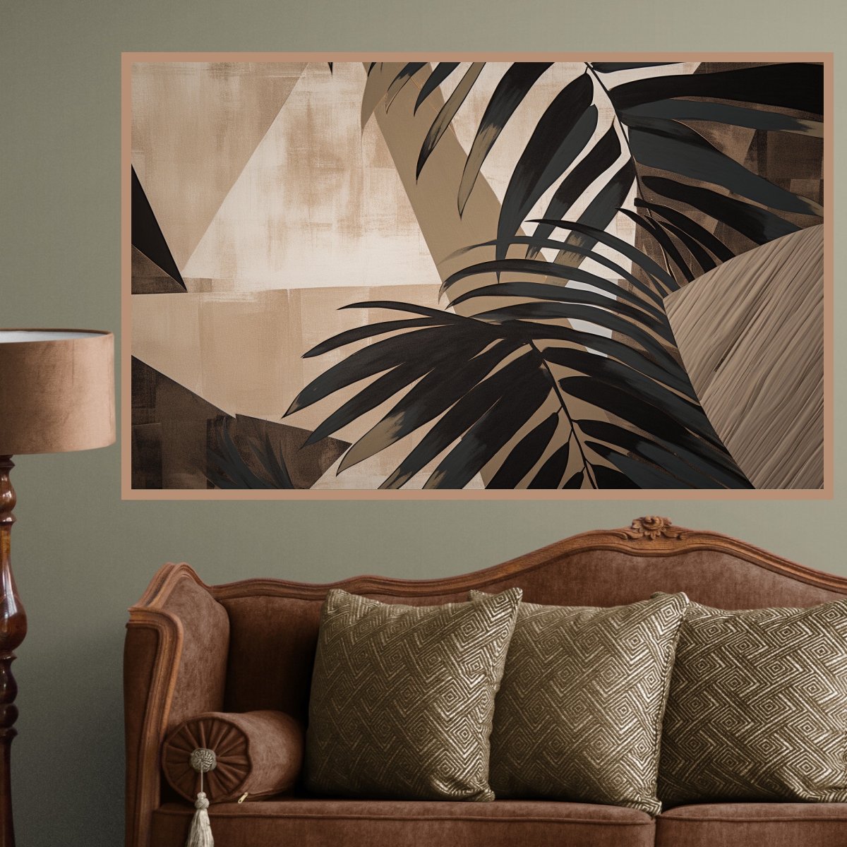 Esta bela arte Folhas Figurativas em Tons de Bege e Marrom é uma obra de arte de primeira linha. Impresso com detalhes realistas e cores vibrantes, esta pintura é perfeita para qualquer fã de arte natural ou de decoração de interiores elegante. Compre hoje e adicione um toque de beleza e mistério à sua casa.