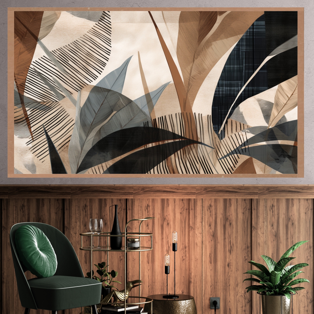 Esta bela arte Folhas Figurativas em Tons Terrosos é uma obra de arte de primeira linha. Impresso com detalhes realistas e cores vibrantes, esta pintura é perfeita para qualquer fã de arte natural ou de decoração de interiores elegante. Compre hoje e adicione um toque de beleza e mistério à sua casa.