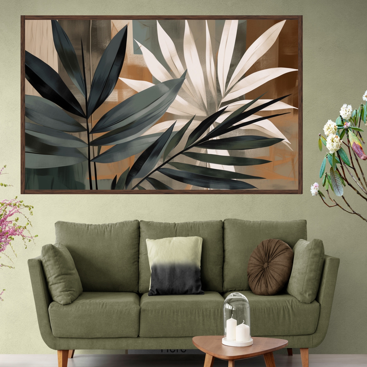 Esta bela arte Folhas Figurativas é uma obra de arte de primeira linha. Impresso com detalhes realistas e cores vibrantes, esta pintura é perfeita para qualquer fã de arte natural ou de decoração de interiores elegante. Compre hoje e adicione um toque de beleza e mistério à sua casa.