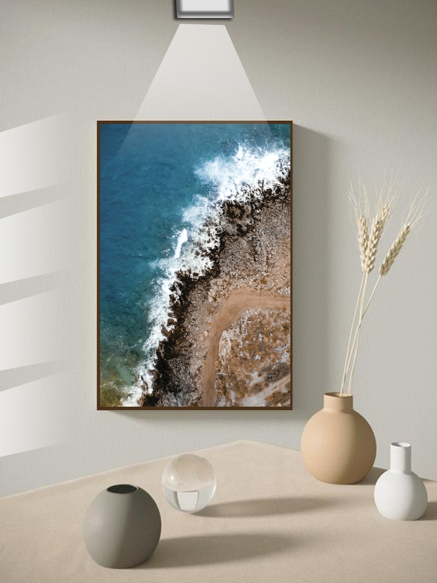 Material leve, resistente e de superfície lisa. A impressão é feita diretamente na placa, garantindo alta definição e fidelidade das cores com a adição de uma folha de vidro na frente. O resultado é um visual mais moderno e clean, com acabamento uniforme e sem relevo. Perfeito para ambientes com decoração contemporânea e minimalista.