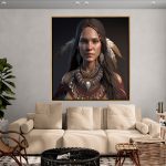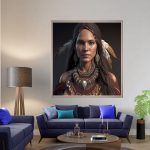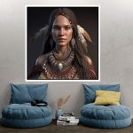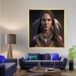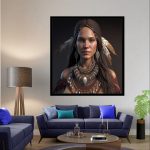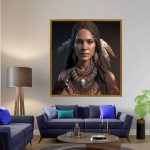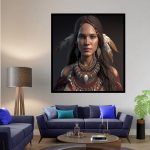 Este quadro de uma índia figurativa é uma obra de arte de primeira linha. Ele é impresso com detalhes realistas e cores vibrantes. O quadro é perfeito para qualquer fã de arte figurativa ou de decoração de interiores elegante. Compre hoje e adicione um toque de beleza e mistério à sua casa