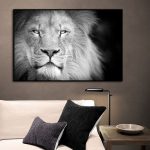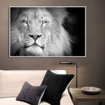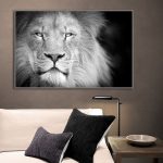 Este quadro de um leão preto e branco é uma obra de arte de primeira linha. Ele é pintado com detalhes realistas e cores fortes. O quadro é perfeito para qualquer fã de animais selvagens ou de decoração de interiores elegante. Compre hoje e adicione um toque de beleza e poder à sua casa.