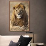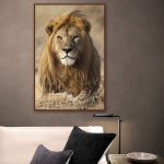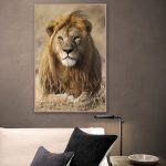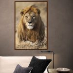 Este quadro de um leão é uma obra de arte de primeira linha. Ele é pintado com detalhes realistas e cores vibrantes. O quadro é perfeito para qualquer fã de animais selvagens ou de decoração de interiores elegante. Compre hoje e adicione um toque de beleza e poder à sua casa.