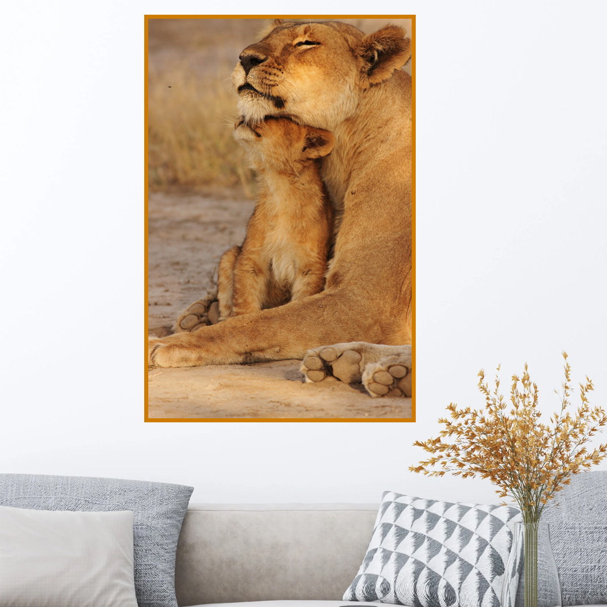 Capture o vínculo incomparável entre mãe e filhote com nosso quadro de parede excepcional, apresentando a imagem principal emocionante de uma leoa e seu filhote em um momento de ternura. Com qualidade de primeira linha, cada traço da majestade da leoa e da delicadeza do filhote é cuidadosamente retratado, transmitindo a beleza natural dessa conexão.