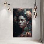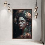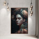 Este belo quadro de uma menina com flores é uma obra de arte de primeira linha. Impresso com detalhes realistas e cores vibrantes, este quadro é perfeito para qualquer fã de arte feminina ou de decoração de interiores elegante. Compre hoje e adicione um toque de beleza e mistério à sua casa.