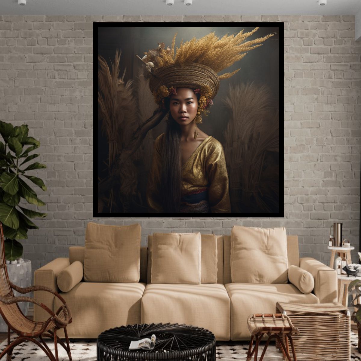 Esta bela arte Mulher Asiática com Plantação de Trigo é uma obra de arte de primeira linha. Impresso com detalhes realistas e cores vibrantes, esta pintura é perfeita para qualquer fã de arte natural ou de decoração de interiores elegante. Compre hoje e adicione um toque de beleza e mistério à sua casa.