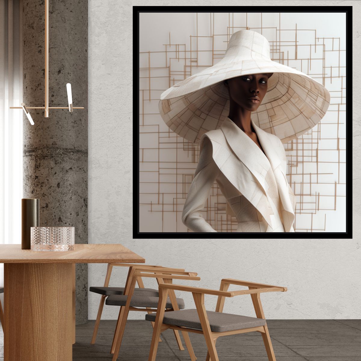 Esta bela arte Mulher Figurativa com Chapéu em Tons Off White é uma obra de arte de primeira linha. Impresso com detalhes realistas e cores vibrantes, esta pintura é perfeita para qualquer fã de arte natural ou de decoração de interiores elegante. Compre hoje e adicione um toque de beleza e mistério à sua casa.