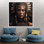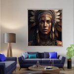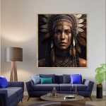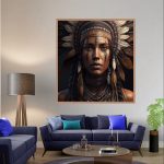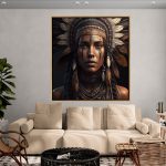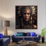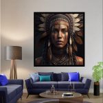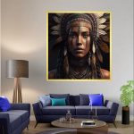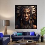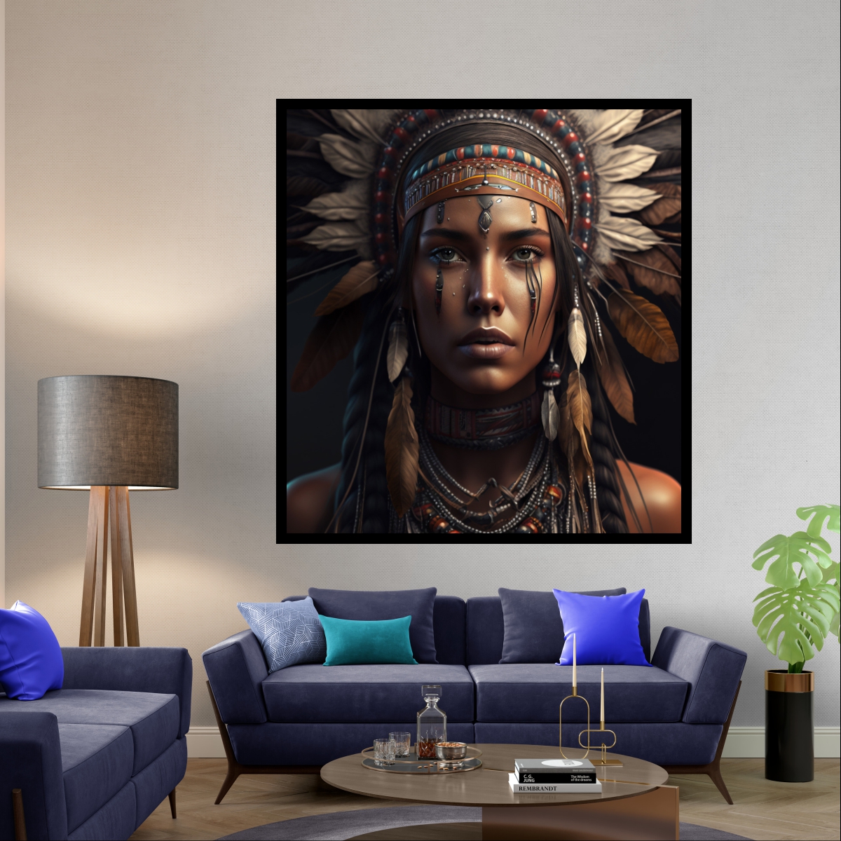 Este quadro de uma mulher indígena é uma obra de arte de primeira linha. Ele é impresso com detalhes realistas e cores vibrantes. O quadro é perfeito para qualquer fã de arte figurativa ou de decoração de interiores elegante. Compre hoje e adicione um toque de beleza e mistério à sua casa