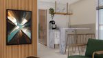 Material leve, resistente e de superfície lisa. A impressão é feita diretamente na placa, garantindo alta definição e fidelidade das cores com a adição de uma folha de vidro na frente. O resultado é um visual mais moderno e clean, com acabamento uniforme e sem relevo. Perfeito para ambientes com decoração contemporânea e minimalista.