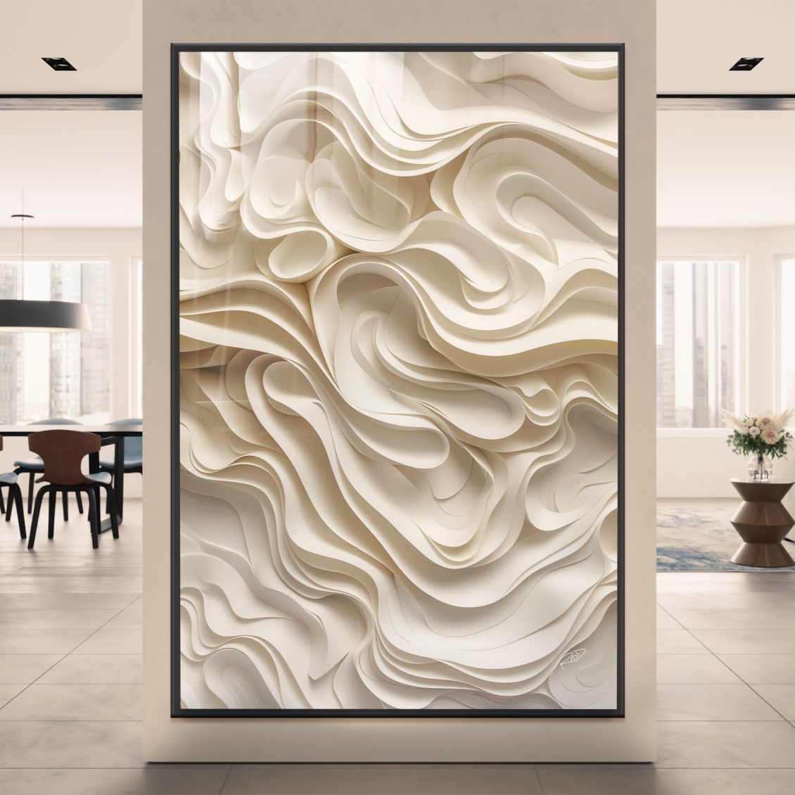 Material leve, resistente e de superfície lisa. A impressão é feita diretamente na placa, garantindo alta definição e fidelidade das cores com a adição de uma folha de vidro na frente. O resultado é um visual mais moderno e clean, com acabamento uniforme e sem relevo. Perfeito para ambientes com decoração contemporânea e minimalista.